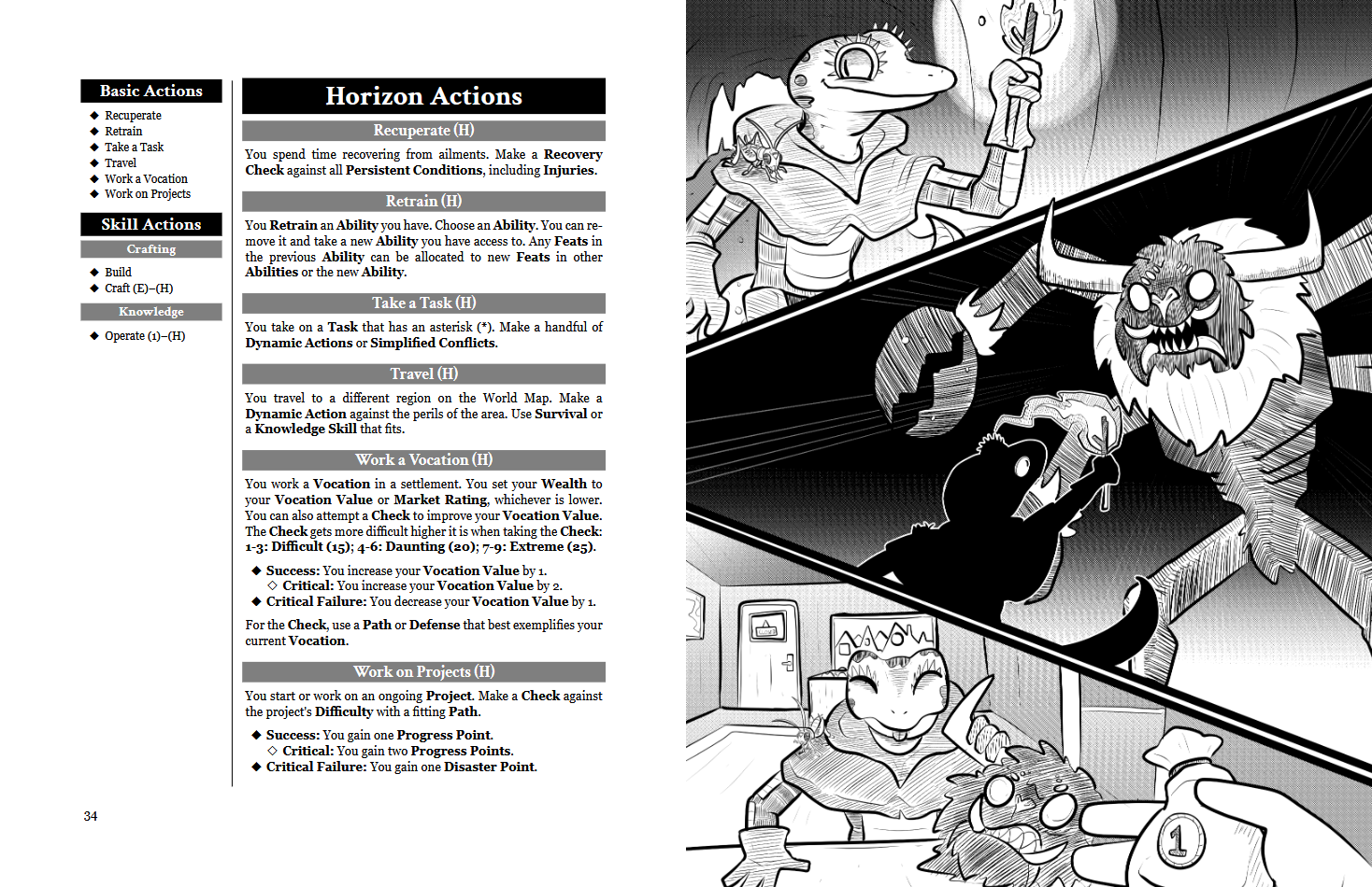 The gameplay is designed to be simpler and easier than the biggest d20 games in the market, while still having as much if not more meaningful options at any point during the game, be it during conflicts or while leveling up. The game's Campaign Map system also fosters an open-ended gameplay experience naturally, without the facilitators (called Game Wardens) needing to come up with a massive sandbox on the fly or prep for hours on end for all possible eventualities.